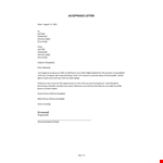 How to accept a job offer? Freely download this sample Job Offer acceptance letter or check for similar acceptance letters in our database