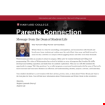 Create engaging and informative newsletters with our Parents Newsletter Template. Keep parents up-to-date on the latest news and events at Harvard College. Download in PDF format now!