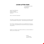 Cover Letter Form Template | PDF Format