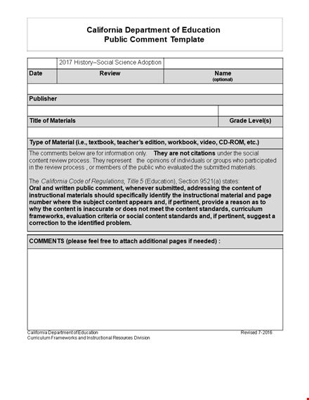 Comment Card Template - Create Engaging Social Content | California Public Education