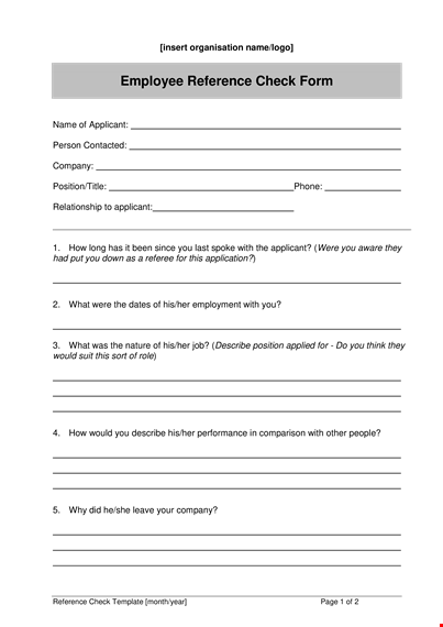 - Efficiency and Time Savings: Having a standardized form saves time as it provides a clear set of questions to ask references, ensuring all relevant information is obtained in a systematic manner.