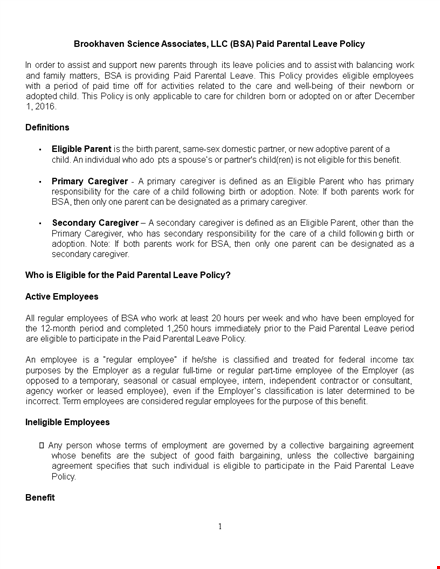 Don't miss out on the opportunity to support your employees and create a family-friendly work environment. Download our comprehensive Paid Parental Leave Policy template in DOCX format from BizzLibrary.com today. It's an invaluable resource for establishing a fair and supportive policy that benefits both your employees and your business.