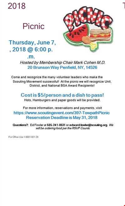 Picnic Flyer Template - District Picnic | Scouting Event | Easily Recognize