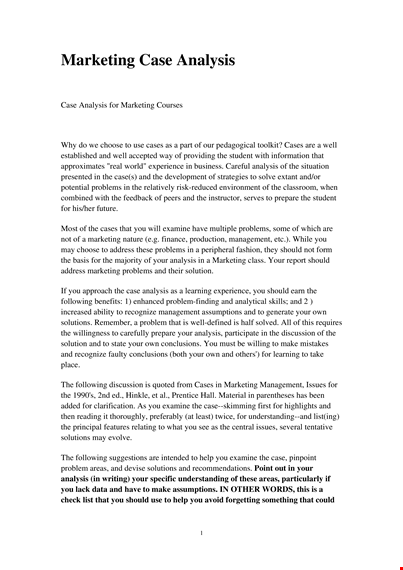 - Comprehensive Analysis: Our template includes sections to evaluate various aspects of the marketing case, such as market analysis, target audience, marketing objectives, strategies, tactics, and performance measurement. It prompts you to consider all the relevant factors for a thorough analysis.