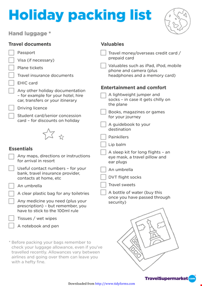 Visit our website now to access a wide range of document templates to make your travel experience more enjoyable. Don't wait any longer –click now and download our Packing List Template today!