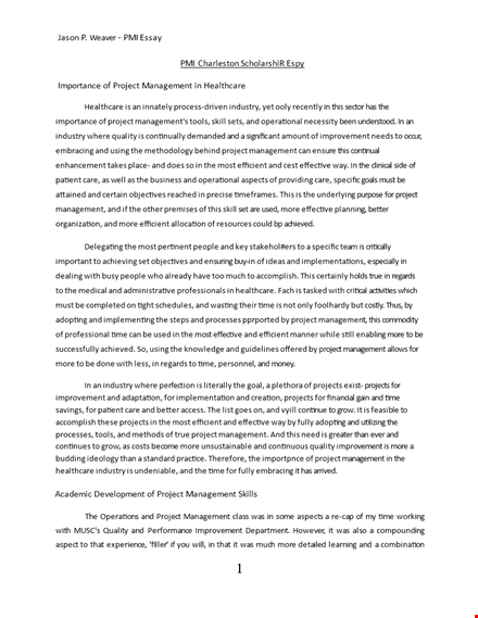 Unlock your potential and increase your chances of receiving the prestigious PMI Charleston Scholarship. Visit BizzLibrary.com now to download our PMI Charleston Scholarship Essay template in DOCX format. With this expertly crafted template, you'll be well on your way to writing an impressive essay that highlights your dedication to project management and the healthcare industry!