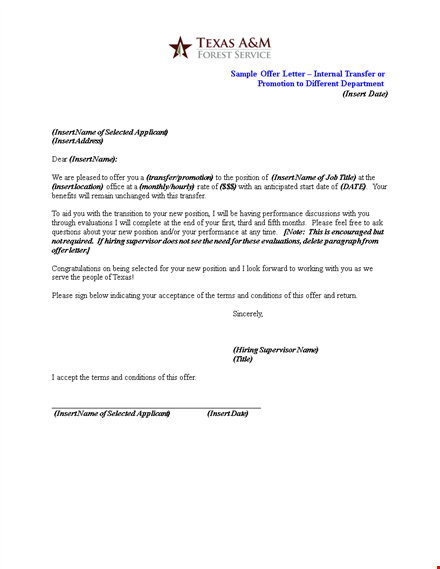 - Start Date and Transition: The offer letter specifies the start date of the new position, allowing the employee to plan for the transition. It may also include information about any training or orientation programs required for the new role.