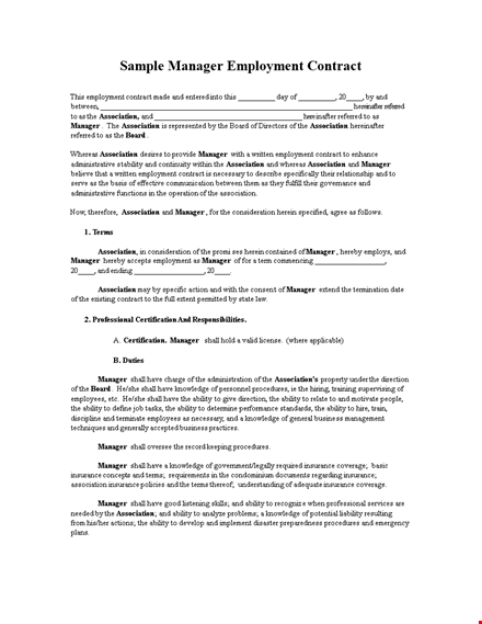 Sample Manager Employment Contract - Board Association Shall | SEO Contract Template