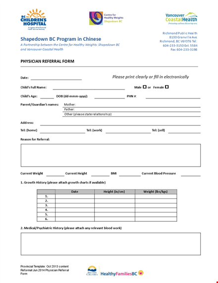 Family Referral Form Template for Shapedown Program - Please Join Us!