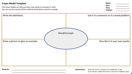 The Frayer Model is a visual solution used to help your students dissect and better understand complex vocabulary terms. The Frayer model instructs your students to write a definition, important characteristics, examples, and non-examples of a single word. Add your own word to the middle of Frayer Model template and then add text to each of the four sections to make your own Frayer Model. This Powerpoint (PPTX) example contains several variations of the Frayer Model. Just select the slide that best fits your needs. Each slide is fully adjustable. Easy to print. We also have PDF version available at Bizzlibrary.com.