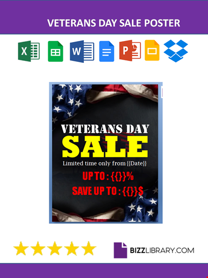 In making a poster for veterans day, just search for a background that fits the holiday celebration, then add something that is memorable for that holiday, and lastly write your sale poster details, and you are good to go. Also, you can use our sample template for your reference.Are there any sales on Veterans Day?