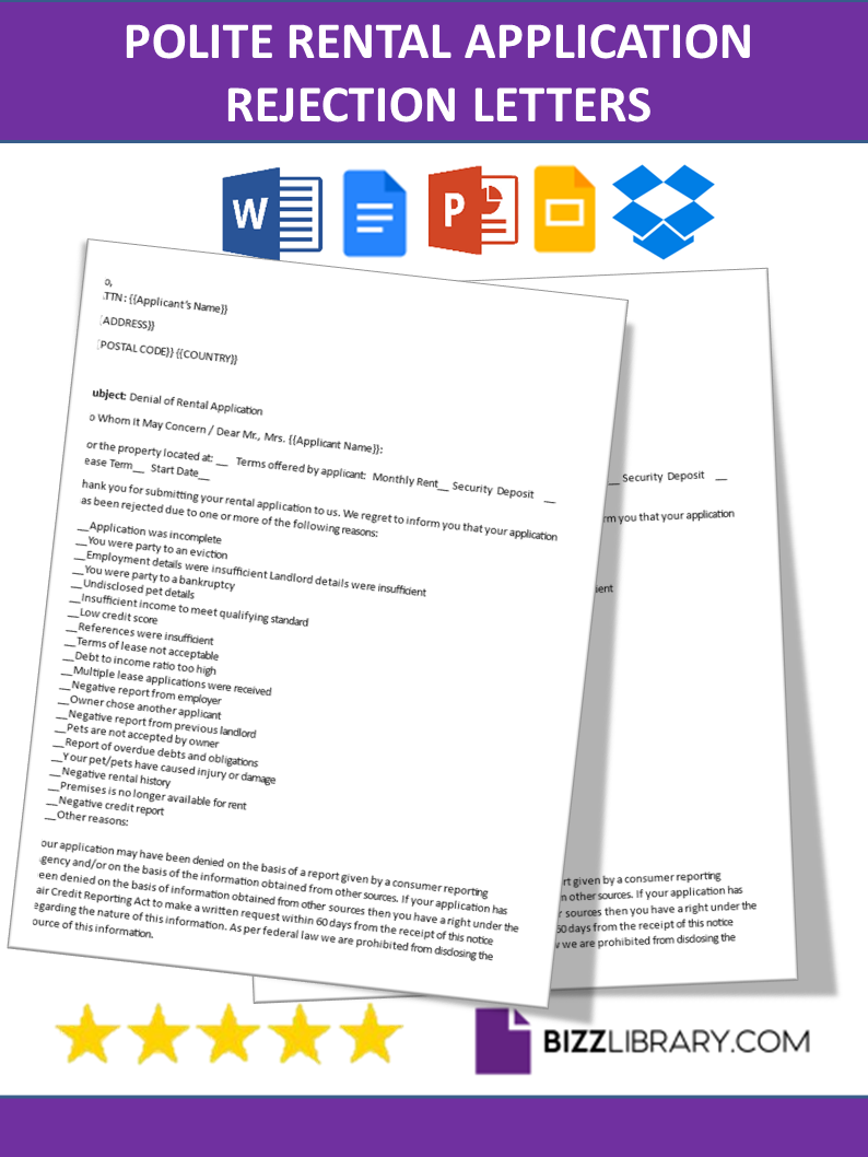 There are several reasons why rent applications can be denied by the landlord or agency. When you want to draft a polite notice rejecting application for rent or lease, you can use the following rejection reasons: