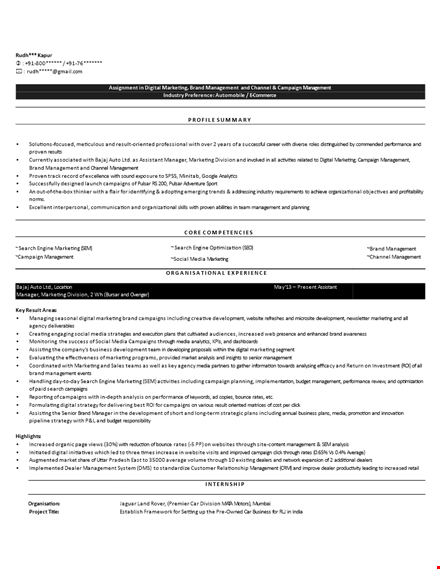 - Experience: Showcase your work history, including previous roles, responsibilities, and notable achievements in managing digital marketing campaigns, driving brand awareness, and achieving marketing goals.