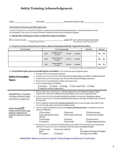 Safety Training Acknowledgement Letter Template Doc