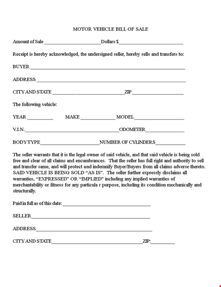 Ensure a smooth and legally binding transaction by downloading our professionally designed and legally sound Motor Vehicle Bill of Sale template in DOCX format. Simply click on the link below to start your download: