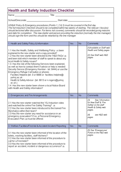 Health and Safety Induction Checklist for Starter Employees | Ensuring Safety and Health Compliance