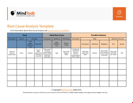 Visit our website to download our comprehensive Root Cause Analysis Template in DOCX format. Our template is fully customizable to meet the unique needs of your organization and can be used to investigate a wide variety of problems. Analyze issues with confidence and develop long-lasting solutions that will help your organization thrive.
