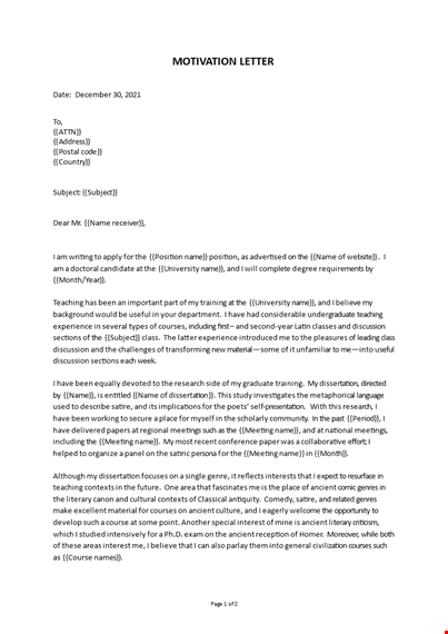 After downloading this Motivation letter and filling in the blanks, you can easily customize the style, typography, details, and appearance of your letter. If this isn't the right template you are looking for, then certainly take a look at the other letters that Bizzlibrary.com offers. We have many letters ranging from cover letters to business letters and thank you notes.