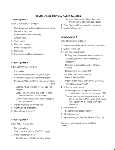 Using a sample Teen Advisory Board Agenda provides you with a framework to create a well-organized meeting plan. Here's why it can be beneficial: