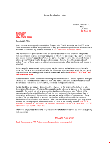 Download Sample Notification Termination Letter to Landlords | Easy Service | Lease Address | Member