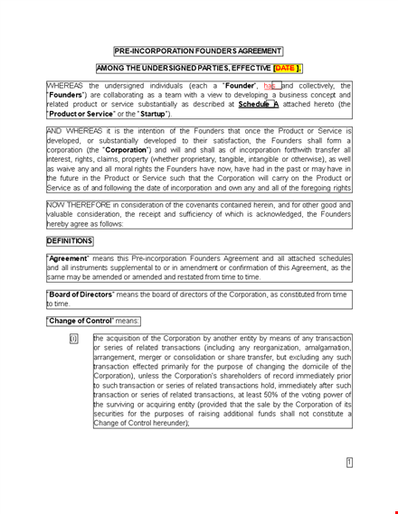 - Termination and Exit Strategy: It's wise to plan for the unexpected. The agreement addresses scenarios such as a founder's departure, resignation, or death and outlines the procedure for transferring or buying out their shares.