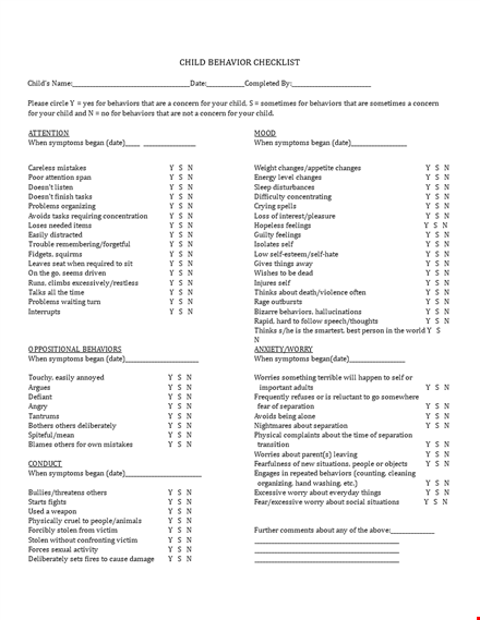 - Tracking Progress: By regularly updating the checklist, you can track changes over time and identify patterns or improvements in a child's behavior. This information can be valuable for assessing the effectiveness of interventions or identifying potential triggers.