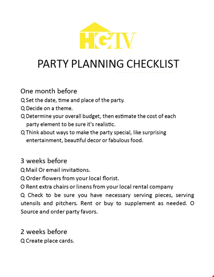 - Stay on Track: A party planning checklist ensures that you don't forget anything important. It helps you prioritize tasks and keep track of deadlines, ensuring that you complete everything on time.
