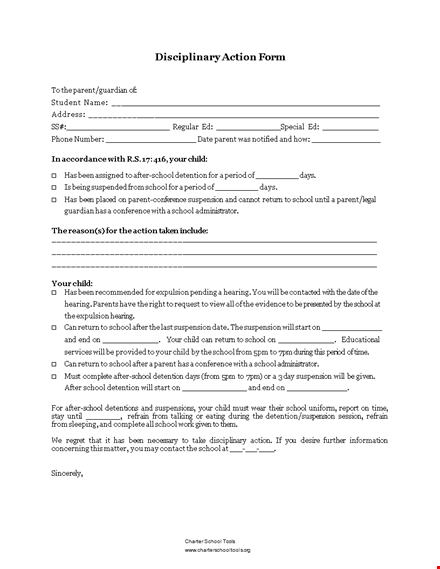- Communication: By sending a copy of the disciplinary action form to the student's parent or guardian, it provides transparency about the incident and encourages communication about any issues. This helps the parents work alongside the school authorities in assisting the child with behavioral issues.