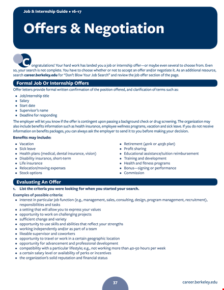 - Salary: Confirm the salary offered and any other compensation details, such as bonuses or benefits.