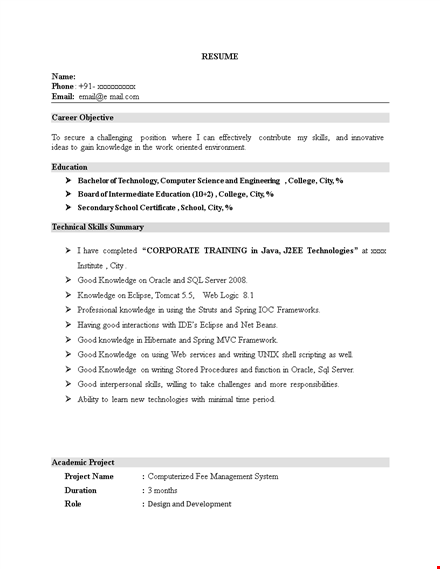 - Highlighting Your Skills: As a fresher, it's important to emphasize any relevant skills you have acquired through academic projects, internships, or personal projects. Include details about your proficiency in programming languages, frameworks, and tools related to Core Java.