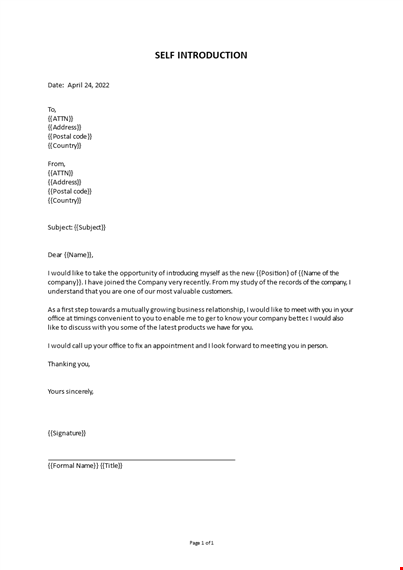 After downloading this Self Introduction Letter and filling in the blanks, you can easily customize the style, typography, details, and appearance of your form. If this isn't the right template that you are looking for, then certainly take a look at the other letters that Bizzlibrary.com has to offer. We have many forms available.