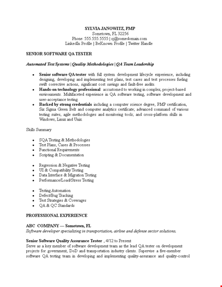 - Education and Qualifications: Include your educational background, including any relevant degrees or courses related to software testing. Mention any professional certifications you hold, such as ISTQB or CSTE.