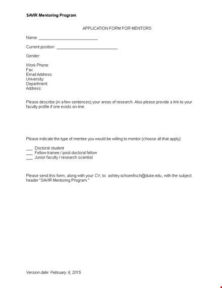 - Mentorship Preferences: The form includes sections where you can specify your areas of expertise and the type of mentoring you're interested in. This helps organizations match you with mentees who can benefit from your specific knowledge and experience.