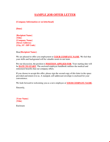 - Professionalism: A well-written job offer letter communicates that your company is a professional and respectful place to work. It sets the tone for the employment relationship and expresses your enthusiasm for having the new hire on board.