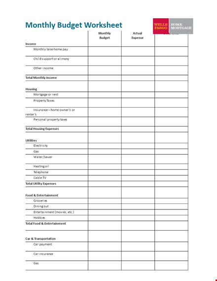- Total Expenses: This section summarizes all your monthly expenses, providing a clear picture of how much you are spending.