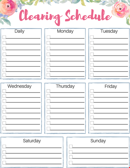 Keeping your home clean and organized is a top priority, but it doesn't have to be a daunting task. With our customizable house cleaning checklist in DOCX format, you can easily manage your cleaning routine and keep your home spotless. Our template includes a comprehensive list of cleaning tasks to be completed in each room of your home, as well as a schedule to help you stay organized.