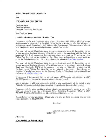 - Conditions and Expectations: The letter outlines the specific conditions, such as the effective date of the promotion, any probationary periods, and any performance expectations associated with the new role.