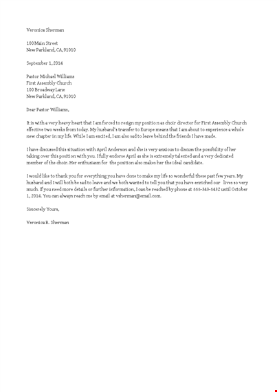 - Smooth Transition: By providing notice of your resignation, the church leadership has time to initiate a transition plan and find a suitable replacement for your position.