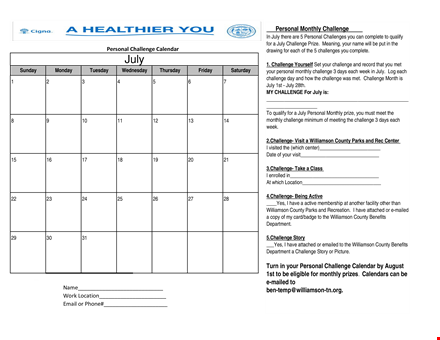 A Personal Monthly Challenge Calendar is a tool designed to help you plan and track your challenges and goals on a monthly basis. It provides a visual representation of your progress, allowing you to stay accountable and motivated throughout the month. With this calendar, you can set specific challenges for yourself in various areas of your life, such as health, fitness, personal development, creativity, or any other aspect you wish to focus on.