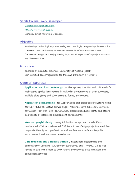 - Emphasize Your Design Ability: As a web designer, your resume should demonstrate your eye for aesthetics and design principles. The resume sample provides a visually appealing and well-organized layout that reflects your design skills while maintaining a professional look.