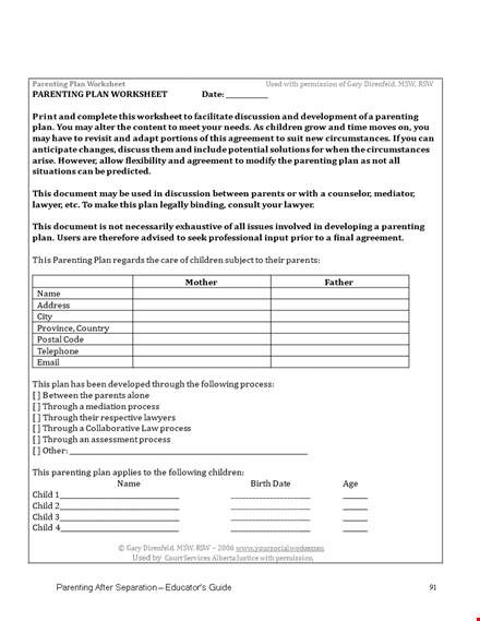 Create a Comprehensive Parenting Plan Template with Input from Both Parents