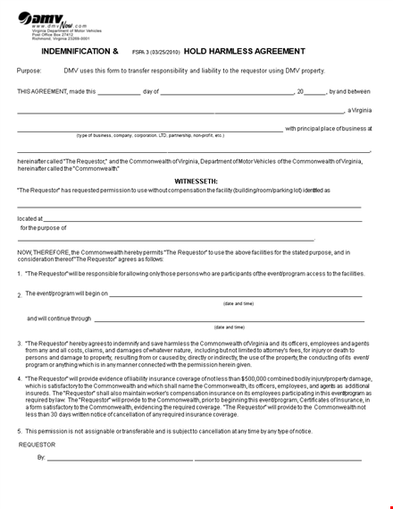 Protect Your Event with a Hold Harmless Agreement Template | Requestor, Virginia, Commonwealth