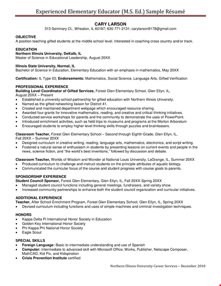 - Teaching Skills: Showcase your key teaching skills, such as curriculum development, classroom management, and differentiation strategies.