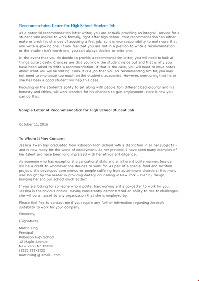 Don't miss out on job opportunities just because you lack a strong letter of recommendation. Download our professionally drafted letter of recommendation template for high school students in DOCX format and take a step closer to your dream job. It's free and easy to use!