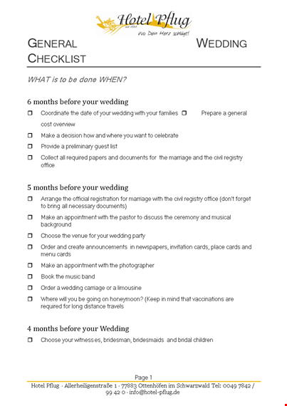 - Save Time and Money: A checklist keeps you organized and efficient, allowing you to make the most of your time and resources. It helps you budget wisely, ensuring that you don't overspend and that you allocate funds to the most important elements of your wedding.
