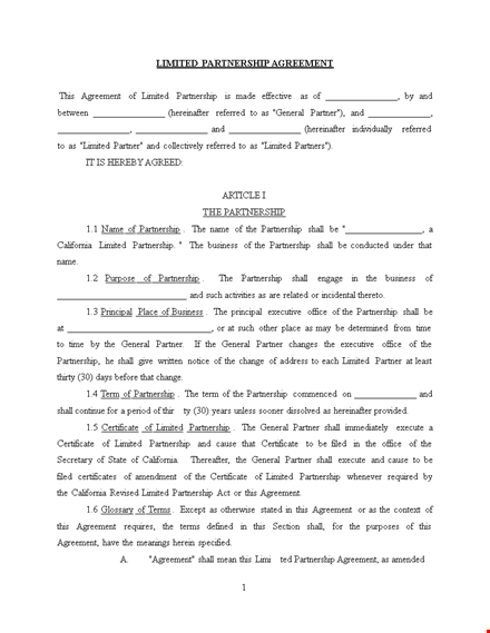 Don't risk the success of your partnership venture! Get the protection and clarity you need with our Limited General Partnership Agreement template today.