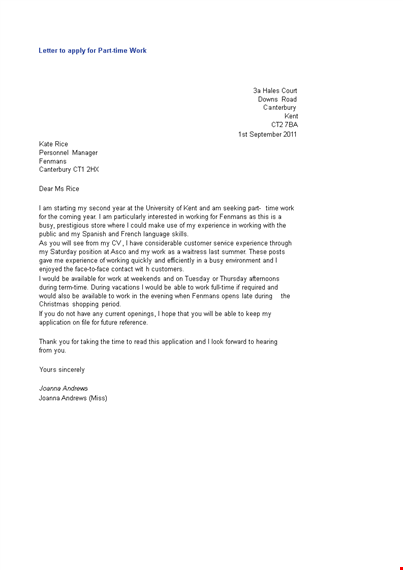 - Expressing Your Motivation: A well-written application letter helps you demonstrate your enthusiasm for the position and the company. It allows you to explain why you are interested in the part-time job and how it aligns with your goals and aspirations.