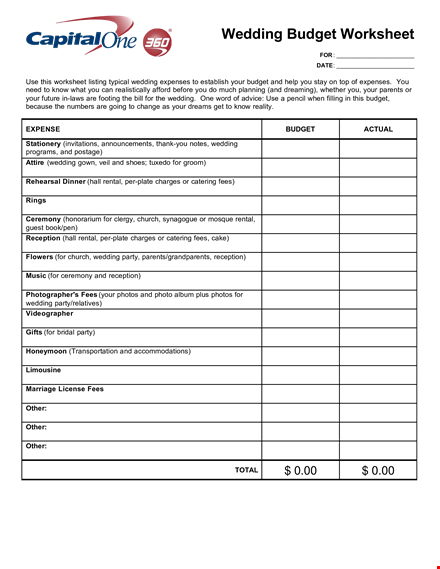 - Set a Budget: The Wedding Worksheet provides a dedicated section for outlining your wedding budget. You can input the total amount you're willing to spend and allocate specific amounts to various wedding elements, such as venue, catering, flowers, photography, and more.