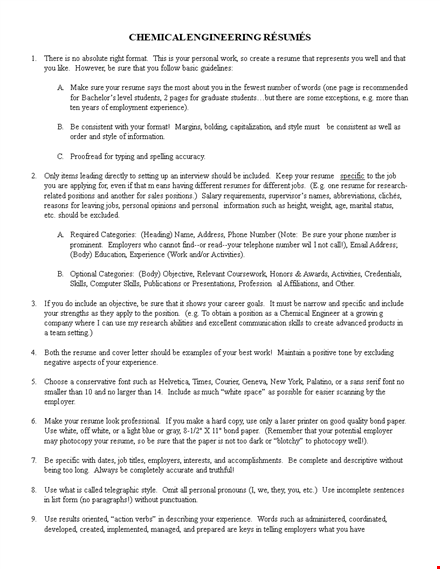 - Highlight Relevant Experience: Your resume should feature any internships, co-op placements, or research projects you've undertaken in the field of chemical engineering. This demonstrates your practical experience and ability to apply your knowledge in real-world scenarios.