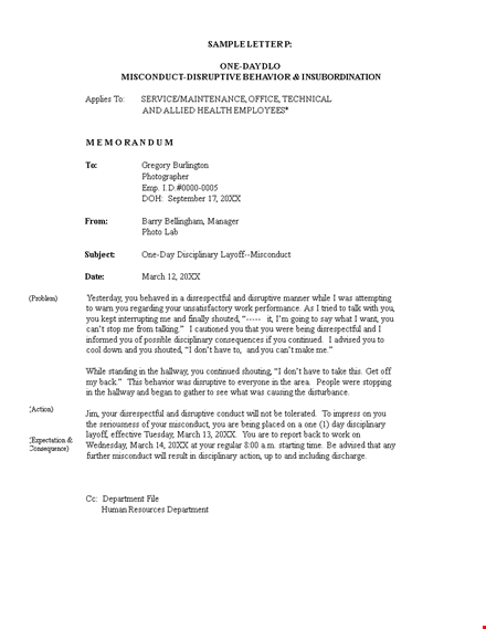 - Documentation: By documenting the incident and the warning issued, you create a record of the employee's misconduct. This can be crucial in case of further disciplinary actions or if a pattern of disruptive behavior emerges.